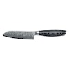 Mareldin Akio santokuveitsi 13 cm on veitsi, johon tartut, kun haluat työskennellä tarkasti ja tarkasti. Pienempi terän pituus antaa hyvän hallinnan ja tekee siitä täydellisen yrttien pilkkomiseen, vihannesten viipaloimiseen tai ruokalajien yksityiskohtien korjaamiseen. Teräksen Damaskuskuviointi tekee jokaisesta veitsestä ainutlaatuisen ja antaa sarjalle sen tunnusomaisen ilmeen, kun taas pakkawood-kahva tuo lämpöä ja eleganssia. Pieni santoku, jolla on suuri persoonallisuus - luotu kaikkeen nopeista arjen hetkistä luoviin keittiöhetkiin.