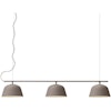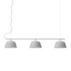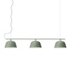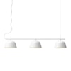 Muuto-merkin Ambit Rail -kattovalaisin minimalistisella, skandinaavisella muotoilulla kolmella ripustamaan ruokapöytien, keittiön pöytien tai työpöytien yläpuolelle täydellisellä varjostimella rivissä.