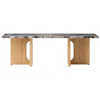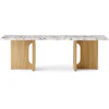 Androgyne loungepöytä Audo Copenhagen-tuotemerkiltä modernilla, hienostuneella muotoilulla jokaiseen kotiin täydellisellä ajattomalla lookilla. Siinä on mielenkiintoinen jalusta luonnollisesta tammesta hienostuneella, suorakulmaisella pöytälevyllä sulautuen harmonisesti ympäristöön.