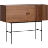 ARRAY senkki Woud-tuotemerkiltä kauniilla muotoilulla viilusta siistiin säilytykseen. Siinä on puhtaat linjat tunnusomaisilla säleiköillä yhdellä sivulla heijastamaan kauniisti valoa ja suurehko säilytystila pehmeästi sulkeutuvilla ovilla. Siinä on olohuoneeseen tai kotitoimistolle täydellisesti sopiva kapea, ilmava runko.