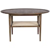 Athene sohvapöytä Haslev-tuotemerkiltä tanskalaisella, elegantilla muotoilulla massiivitammesta pyöreällä muodolla ja profiloidulla reunalla pöytätasolla. Pöydässä on lisäämään ilmettä huoneeseesi täydellisesti sopiva kaunis hylly rottingista alla.