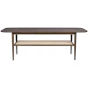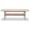 Haslev-merkin Athene-sohvapöytä tanskalaisella, elegantilla muotoilulla massiivitammesta profiloidulla reunalla ja kauniilla hyllyllä rottingista siistiin säilytykseen.