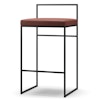Baarijakkara Department-tuotemerkiltä modernilla, hieman matalammalla muotoilulla puhtailla, eleganteilla linjoilla ja mukavaan istuimeen baaripöydän ääressä täydellisellä teollisella ripauksella. Siinä on vankat kehykset lakatusta teräksestä käytännöllisellä jalkatuella ja mukavalla selkänojalla ja pehmeä istuin eksklusiivisella verhoilulla.