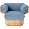 Basket lounge-tuoli GUBI-tuotemerkiltä toimimaan näyttävänä osana sisustusta täydellisesti sopivalla uniikilla muotoilulla. Korkealaatuinen muotoilu upealla käsityötaidolla. Tarkkaan harkittu rakenne lujatekoisella teräsrungolla, simpukalla käsinkudotusta rottingista ja vaahtomuovitäytteisillä, mukavilla tyynyillä.