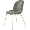 Beetle tuoli GUBI-tuotemerkiltä tyylikkäällä, ikonisella muotoilulla pehmeällä, topatulla istuimella, kauniilla, yksinomaisella verhoilulla ja kapeilla lahkeilla messingöidystä teräksestä. Tuolissa on orgaaniset, pehmeät linjat ja pitkille illallisille ruokapöydän ympärillä täydellisesti sopiva ihana mukavuus elegantilla lookilla.