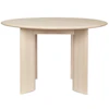 Ferm Living -merkin Bevel-pöytä tyylikkäällä, ajattomalla muotoilulla hellällä, pyöristetyllä reunalla ja eleganteilla, vinoilla, leveillä jaloilla. Täydellinen ruokailutilaan tai keittiöön.