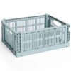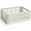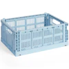 HAY:n Colour Crate on leikkisä ja toimiva säilytyslaatikko, jossa on erottuva rei'itetty kuvio. Sitä on saatavana useissa eri väreissä ja kokoluokissa, ja sitä voidaan pinota eri yhdistelmiin - se sopii täydellisesti järjestyksen luomiseen kaikkeen keittiöstä ja kylpyhuoneesta toimistoon ja vaatekaappiin. Kevyen mutta kestävän rakenteensa ansiosta se sopii yhtä hyvin kaappeihin kuin avohyllyille tai pöydillekin.