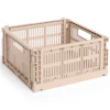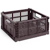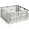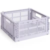 HAY:n Colour Crate on leikkisä ja toimiva säilytyslaatikko, jossa on erottuva rei'itetty kuvio. Sitä on saatavana useissa eri väreissä ja kokoluokissa, ja sitä voidaan pinota eri yhdistelmiin - se sopii täydellisesti järjestyksen luomiseen kaikkeen keittiöstä ja kylpyhuoneesta toimistoon ja vaatekaappiin. Kevyen mutta kestävän rakenteensa ansiosta se sopii yhtä hyvin kaappeihin kuin avohyllyille tai pöydillekin.