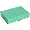 Colour Jewellery Box by Hay, jossa käytännöllisyys kohtaa eloisan muotoilun. Valmistettu erittäin paksusta, FSC-sertifioidusta kartongista, jossa on kiiltävä pinta. Magneettikansi avautuu ja paljastaa useita lokeroita, jotka pitävät arvokkaat sormukset, korvakorut ja kaulakorut järjestyksessä ja helposti löydettävissä.
