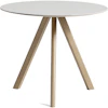Hay-merkin CPH 20 2.0 -pöytä pyöreällä pöytälevyllä monenlaisiin tarkoituksiin. Siinä on ajaton, tanskalainen muotoilu sekä kotiin että toimistoon täydellisellä lujatekoisella pinnalla. Pöydässä on pöytärunko massiivipuusta kolmella vinolla jalalla ja vesipohjaisella lakalla.
