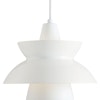 Doo-Wop kattovalaisin Louis Poulsenilta. Valaisin valaisee pääasiassa alaspäin, valkoiseksi lakatun kartionmuotoisen sisemmän reflektorin vuoksi. Ulompi reflektori, ts. varsinainen varjostin heijastaa valoa myös ylöspäin ja antaa miellyttävän ja pehmeän valon. Varjostimen sisäpuoli valaistaan pienemmästä, kartionmuotoisessa reflektorissa olevasta aukosta. Doo-Wop sopii kaikkiin huoneisiin ja valaisee hyvin.