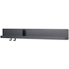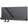 - Hylly matalalla hyllyllä, osioilla ja kahdella koukulla pohjassa.