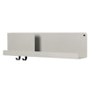 Muuto-merkin Folded-hylly minimalistisella, selkeällä muotoilulla suorilla linjoilla ja käytännöllisillä toiminnoilla helppoa säilyttämistä varten. Valmistettu jauhemaalatusta teräksestä kapealla hyllyllä, yhdellä osiolla ja kahdella koukulla.