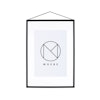 MOEBE-merkin Frame A3 -kehykset tarkkaan harkitulla rakenteella kahdella osalla akryylilasista neljällä listalla. Kuminauha sekä pitää kehyksen kasassa että ripustaa kehyksen seinälle, jolloin lopputulos on esteettisesti miellyttävä. Rakenteen ansiosta kehys voidaan ripustaa kumpaankin suuntaan tai jopa katsella molemmilta puolilta.