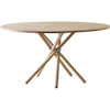 Jokainen yksityiskohta on tarkkaan harkittu. Viisi jalkaa kohtaavat tyypillisessä kiinnitysrenkaassa, joka on kaunis rakenne, joka sekä vahvistaa vakautta että luo pöydän ainutlaatuisen ilmeen. Vaalea tai tumma tammipinta korostaa puun luonnollista rakennetta ja antaa pöydälle lämpimän, tuntuisen tunnun, joka vain kaunistuu ajan myötä.