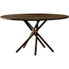 Jokainen yksityiskohta on tarkkaan harkittu. Viisi jalkaa kohtaavat tyypillisessä kiinnitysrenkaassa, joka on kaunis rakenne, joka sekä vahvistaa vakautta että luo pöydän ainutlaatuisen ilmeen. Vaalea tai tumma tammipinta korostaa puun luonnollista rakennetta ja antaa pöydälle lämpimän, tuntuisen tunnun, joka vain kaunistuu ajan myötä.