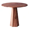 Dusty Decon kuusikulmainen ruokapöytä, jossa on ainutlaatuinen kuusikulmainen jalusta ja pyöreä massiivipuusta valmistettu pöytälevy, joka ilmentää eleganssia.