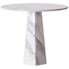 Dusty Decon kuusikulmainen ruokapöytä, jossa on ainutlaatuinen kuusikulmainen jalusta ja pyöreä marmorinen pöytälevy, joka ilmentää eleganssia. Eläväisen, luonnollisen marmorikuvionsa ja pyöreän muotonsa ansiosta tämä mestariteos kutsuu intiimeihin illallisiin ja vilkkaisiin keskusteluihin, ja se sopii erinomaisesti mihin tahansa ruokasaliin tai keittiöön. Tässä ajattoman muotoilun ja jokapäiväisen toiminnallisuuden kohtaaminen.