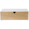 Keep-hyllyssä yhdistyvät minimalistinen muotoilu ja käytännöllinen toiminnallisuus. Se on valmistettu kierrätysteräksestä, jossa on maalattu viimeistely ja tyylikäs tammilaatikko, ja se tuo ripauksen luonnollista lämpöä mihin tahansa tilaan.