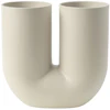Muuto-merkin Kink-vaasi. Yksi keraaminen koriste-esine leikkisällä, veistoksellisella muotoilulla ja isommille kukka-asetelmille täydellisillä kaksinkertaisilla raoilla. Huippulaatu muovatusta keramiikasta perinteisten valmistustapojen mukaan raa'alla ulkopuolella ja kiiltävällä sisäpuolella.