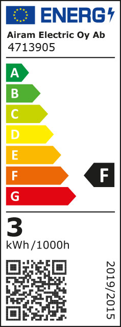 LED valonlähde Airam-tuotemerkiltä kolmivaiheisella himmentimellä lämpimällä valkoisella värilämpötilalla ja kolmella vaihtoehtoisella valaistuksen voimakkuudella.