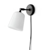 Material seinävalaisin New Works-tuotemerkiltä käytävällä. Valaisin valmistetaan tammesta ja marmorista ja se on toimistolle ja makuuhuoneeseen täydellisesti sopiva. Se valmistetaan betonista, korkkikankaasta, terracotasta, lakatusta teräksestä ja jauhemaalatusta alumiinista.