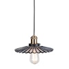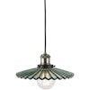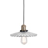 Globen Lighting -merkin Mini Cobbler -riippuvalaisin ajattomalla muotoilulla lasista laskostetulla lampunvarjostimella ja yksityiskohdilla metallista.