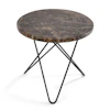 Mini O sohvapöytä merkiltä Ox Danmarq, muotoilija Dennis Marquart. Upea sohvapöytä pehmeillä ja pyöreillä muodoilla. Pöytälevy vihreä marmoria ja runko mustaa terästä. Lyömätön yhdistelmä. Pöydässä on luonnetta ja vakaa olemus, jonka avulla se päihittää klassikotkin. Puhdas, yksinkertainen ja upea materiaali. Jokainen marmorilevy on ainutlaatuinen, joten eroavaisuuksia voi löytyä kuvioinnissa/värissä.