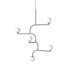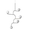 Mobil riippuvalaisin merkiltä Pholc. Tässä tyylikkäässä valaisimessa on kaunis muotoilu, jossa on pallomaiset lasiosat taivutetuilla varsilla. Opaalilasit ja metalliset varret täydentävät kauniisti toisiaan. Mukana tekstiilijohto. G9 valonlähde ei sisälly.