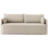 Audo Copenhagen -merkin Offset-sohva modernille kodille täydellisellä kestävällä, skandinaavisella muotoilulla ja vankalla rungolla FSC-sertifioidusta puusta. Siinä on tyynyt kaksinkertaisella vaahtomuoviytimellä peittävällä sekoituksella sulasta ja vaahtomuovista lisämukavuutta varten. Sohvassa on irrotettava, korkealaatuinen verhoilu kätketyllä tarrakiinnityksellä pukemisen ja riisumisen helpottamiseksi. Kokeile yhdessä: sohva ja Offset nojatuoli merkiltä Audo Copenhagen