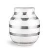 Omaggio vaasi, Kähler. Muotoilijana Stilleben. Tämä kaunis ja minimalistinen vaasi kurvikkaalla muotoilullaan toimii täydellisesti metsän tai puutarhan oksille ja kukkasille. Vaasi tuo modernin ja graafisen ilmeen kotiisi kauniilla käsinmaalatulla raidoituksellaan. Vaasi toimii monikossa, mutta yhtä hyvin myös yksinkertaisuudessaan.