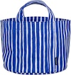 Säilytyskorissa on klassinen Piccolo-kuvio - Vuokko Eskolin-Nurmesniemen vuonna 1953 luoma elävä, raidallinen kuvio. Maalatut siveltimenvedot antavat korille graafisen ja käsintehdyn tunnelman. Helsingissä painetulla kankaalla on vahva suunnitteluhistoria, ja siitä on myöhemmin tullut ikonisen Jokapoika-paidan perusta.