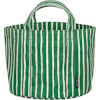 Säilytyskorissa on klassinen Piccolo-kuvio - Vuokko Eskolin-Nurmesniemen vuonna 1953 luoma elävä, raidallinen kuvio. Maalatut siveltimenvedot antavat korille graafisen ja käsintehdyn tunnelman. Helsingissä painetulla kankaalla on vahva suunnitteluhistoria, ja siitä on myöhemmin tullut ikonisen Jokapoika-paidan perusta.