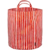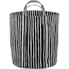 Säilytyskorissa on klassinen Piccolo-kuvio - Vuokko Eskolin-Nurmesniemen vuonna 1953 luoma elävä, raidallinen kuvio. Maalatut siveltimenvedot antavat korille graafisen ja käsintehdyn tunnelman. Helsingissä painetulla kankaalla on vahva suunnitteluhistoria, ja siitä on myöhemmin tullut ikonisen Jokapoika-paidan perusta.