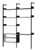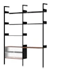 - Tämä malli, Rombe-kokoonpano D (IF2/IF6), on täyskorkea hyllyjärjestelmä, jossa on kaksi osaa, joihin kuuluu hyllyt, kaappi ja työpöytä.