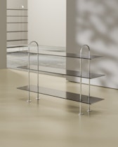 Keen Hyllyjärjestelmä 3 Hyllyllä 160 cm, Satiinikiillotettu Ruostumaton teräs / Sävytetty Lasi