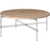 TS Sohvapöytä 80 cm, Kiiltävä Teräs / Lämmin ruskeanharmaa Travertiini