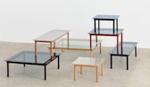 Kofi-sohvapöytä Pähkinäpuu / Aaltoileva lasi, 50x140 cm