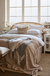 Checked Cotton Poplin Pussilakana Valkoinen / Beige / Laivastonsininen, 220x220 cm