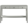 The table has narrow legs and the drawer fronts have chrome handle ring handles. It is made of solid pine as well as MDF and then hand painted with water-based environmentally friendly paint.