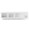Sen runsas säilytystila uurrettujen lasiovien takana pitää mediatarvikkeesi järjestyksessä ja pölyttömänä, mutta säilyttää samalla helpon saatavuuden.