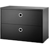 String-lipasto kahdella käytännöllisellä laatikolla pyöreillä, leikatuilla kahvoilla. Osa hyllyjärjestelmästä vakaalla rakenteella, loputtomilla mahdollisuuksilla klassisella, ikonisella muotoilulla ikuista takuutyylikkyyttä varten ja klassisella, ikonisella muotoilulla ikuista takuutyylikkyyttä varten. Huippulaatu korkealaatuisilla materiaaleilla kestämään useiden sukupolvien käytön.