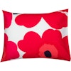Unikko tyynynpäällinen Marimekko-tuotemerkiltä klassisella muotoilulla puuvillasta kukkaisella kuvioinnilla. Täydellinen yksityiskohta, joka tuo paljon iloa arkeesi. Lisää luksustuntua makuuhuoneeseesi samaan sarjaan kuuluvan pussilakanan avulla.