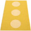 Pappelinan Vera Pop on moderni muovimatto, jossa on leikkisä luonne. Korotetut ympyrät luovat hienovaraisen reliefikuvion, joka antaa matolle ainutlaatuisen ilmeen ja jännittävän rakenteen. Inspiraatio on otettu Art Deco -aikakauden muotokielestä, jossa graafinen selkeys kohtaa eleganssin.